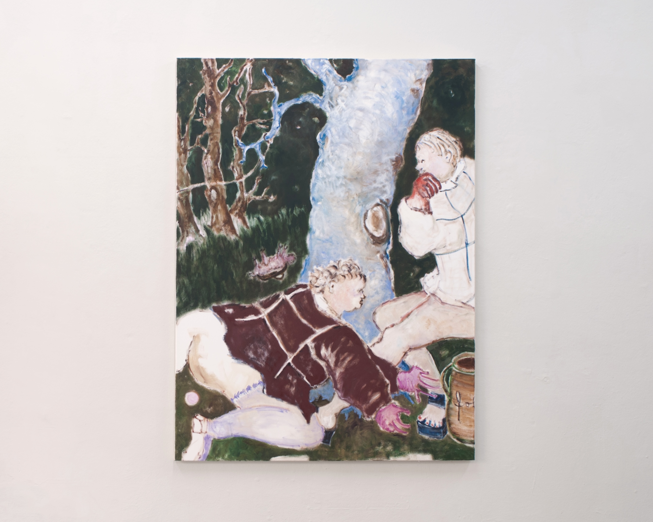 Scantily clad in autumn weather and cold landscapes, Lohof's figures are untethered from any specific time. Their corporeality and lust for flesh are evident in the rounded forms with which they occupy the space.