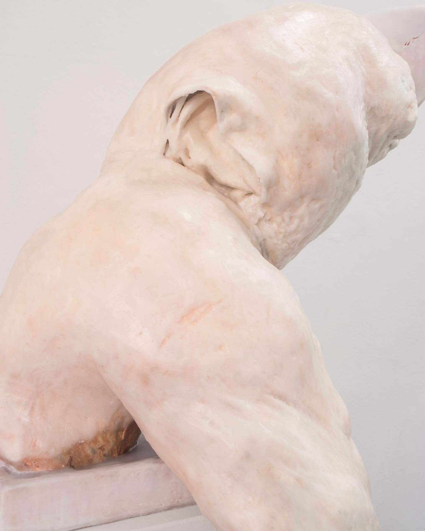 The act of getting under the skin in Anat Homm's art includes both violent, erotic, and tender moments. Haut auf Haut presents a series of works where layers of skin rest upon each other. While the upper layers peel away, the underlying skin protects the flesh. A gentle encroachment rather than a direct intervention. In other works where the artist breaks through the epidermis, gaping wounds and exposed entrails spill forth like a bouquet of flowers. The transience and vulnerability of human flesh are primarily revealed through touch, although both themes are also explored visually. Through close study of paintings like Rubens' Fall of the Damned, the artist successfully transfers the dynamics of falling from canvas into sculpture. Through their twists and fractures, her wax sculptures lay bare the sinful and the frivolous, the grotesque and the sublime - in short, the ambivalence of human corporeality.