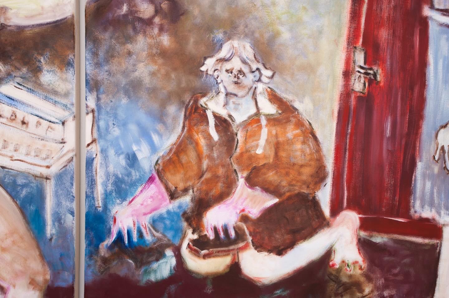 While the skin otherwise remains a noble pale, here the fingers blush, and blood flows through the thighs. For a brief moment, the earthly nature of humanity breaks through the otherwise fairytale-like scenes.