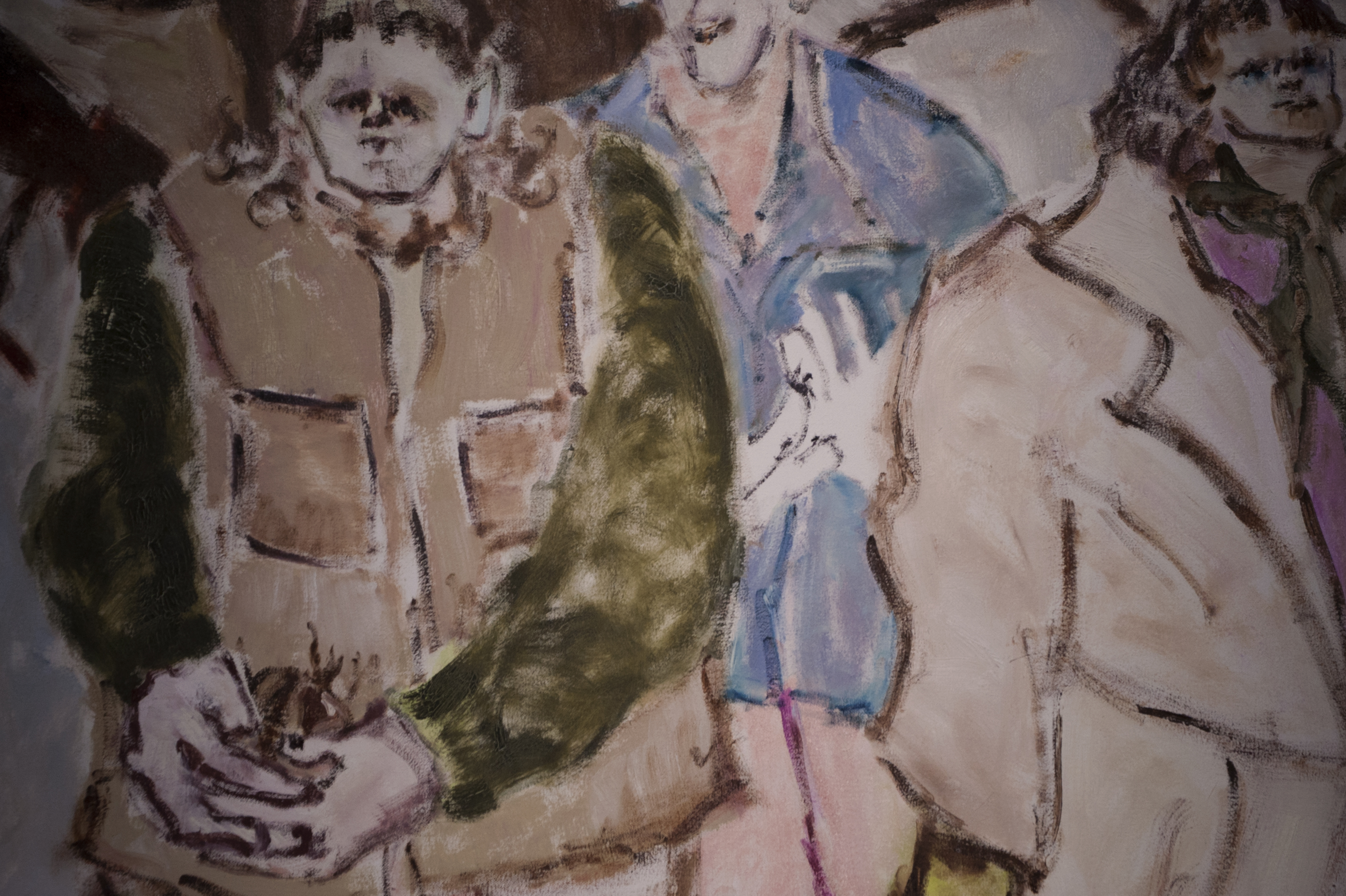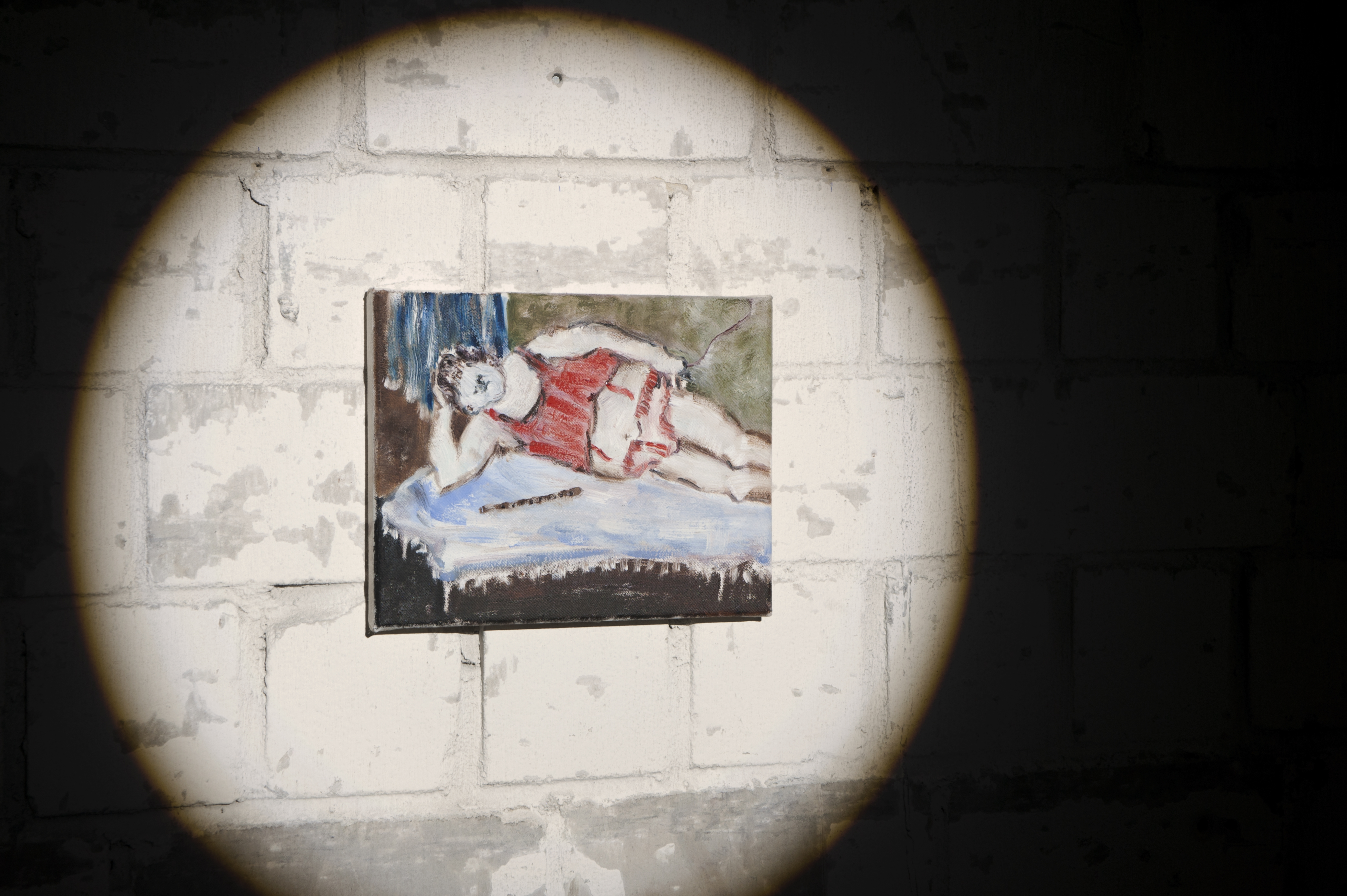 Whether in large formats or smaller ones, Nadine Lohof's protagonists fill the canvases with their bodies. Yet, the viewer's gaze often drifts from their sharp faces and distinctive clothing to the narrative details that guide the direction. A slug on the ground, an onion in hand, or a flute suggestively placed on white bed linens - the flesh of the bodies becomes more pronounced in relation to these small objects.