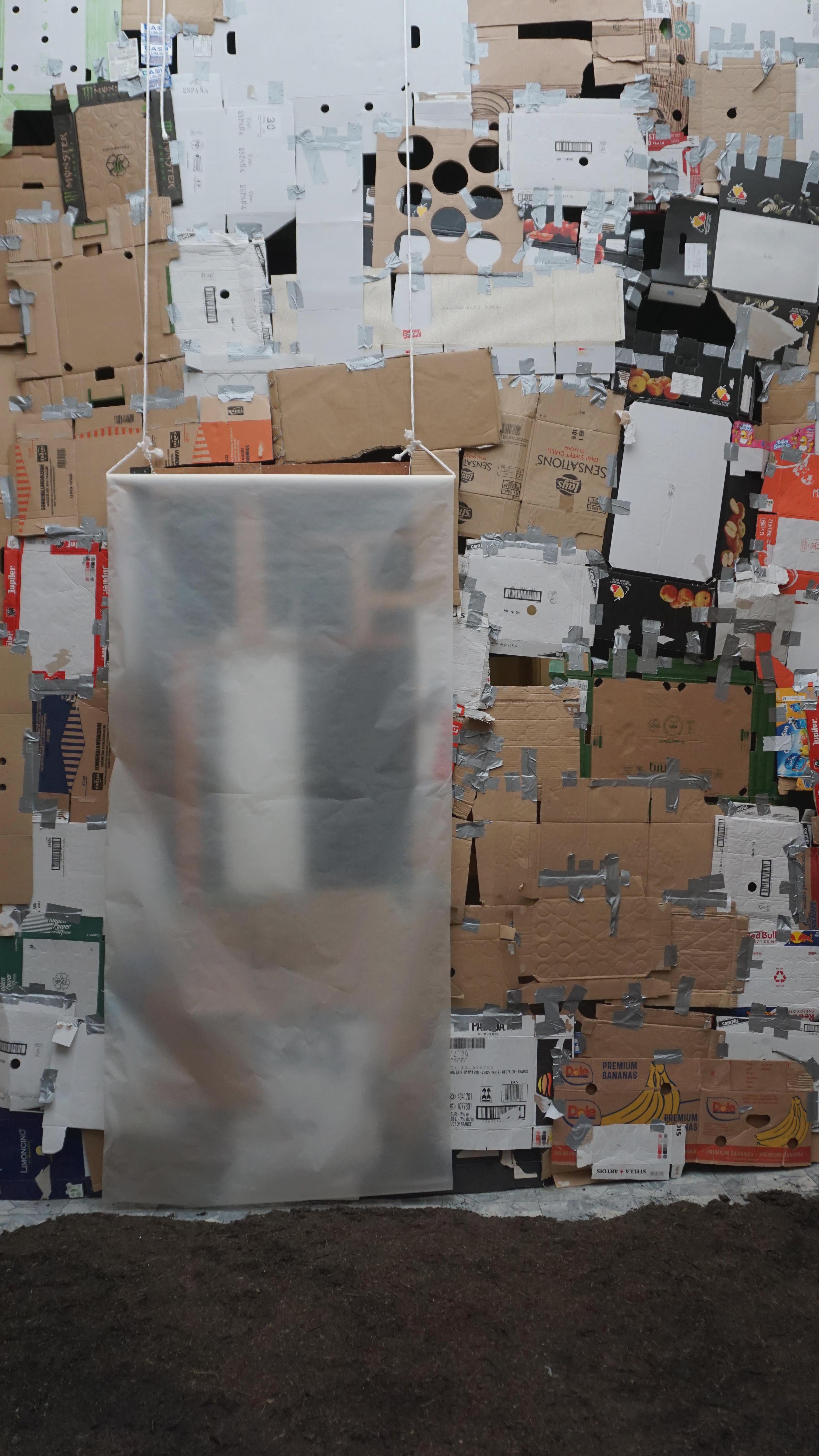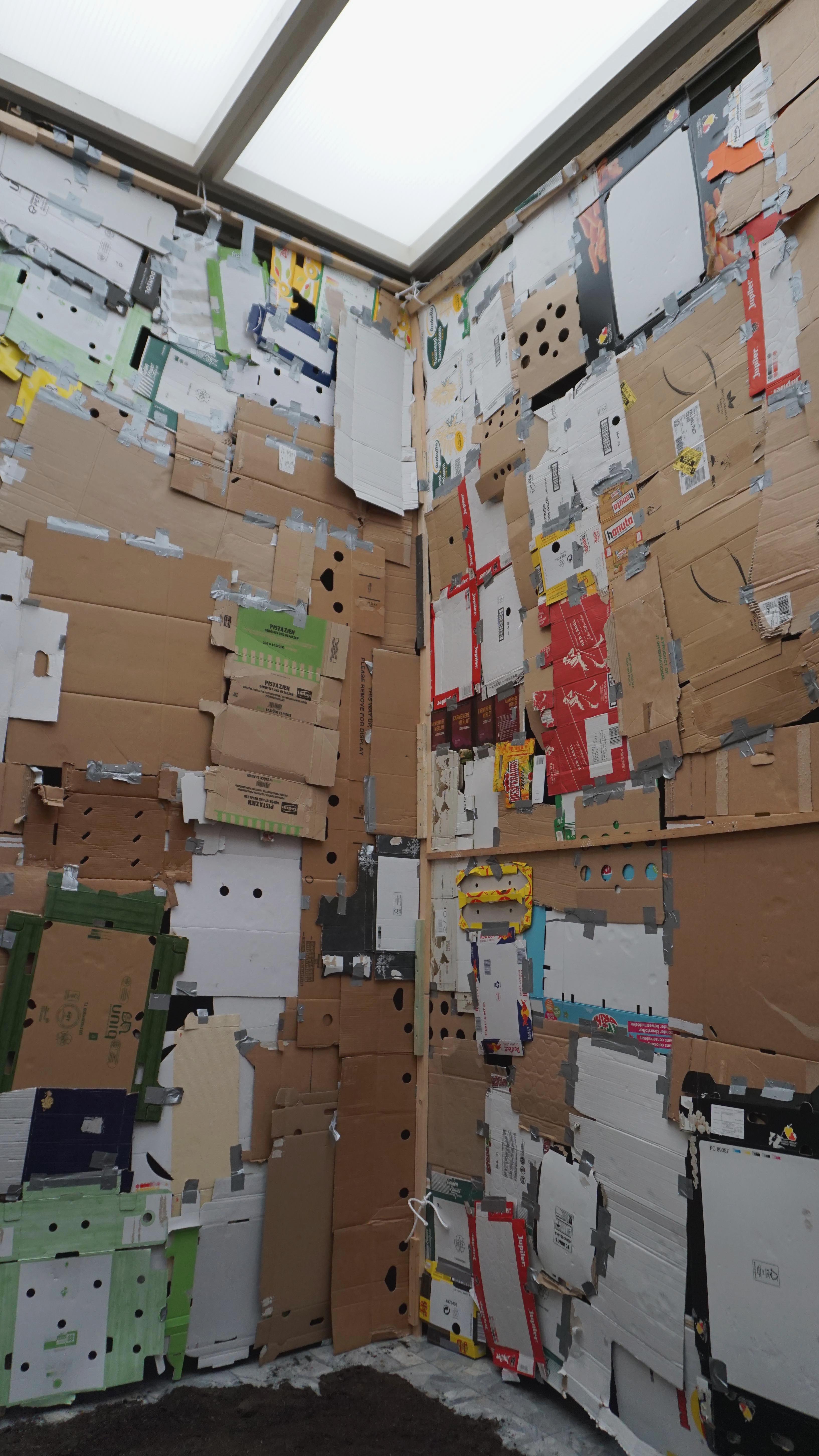 cardboard, soil, wood, duct tape.